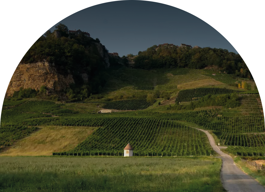 SAVAGNIN, CHARDONNAY, TROUSSEAU, POULSARD Y PINOT NOIR SON LAS VARIEDADES UTILIZADAS PARA ELAVORAR VINOS.