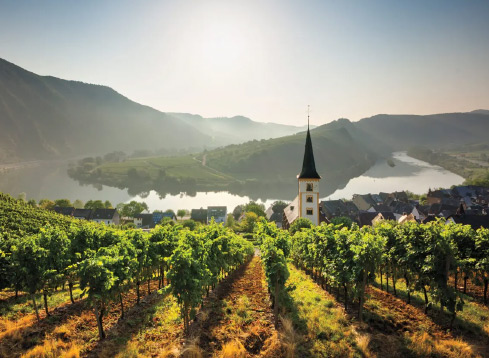 Los viñedos de Mosel están situados en pendientes empinadas, algunas de hasta 70 grados, lo que permite una exposición solar óptima y una excelente maduración de las Uvas.